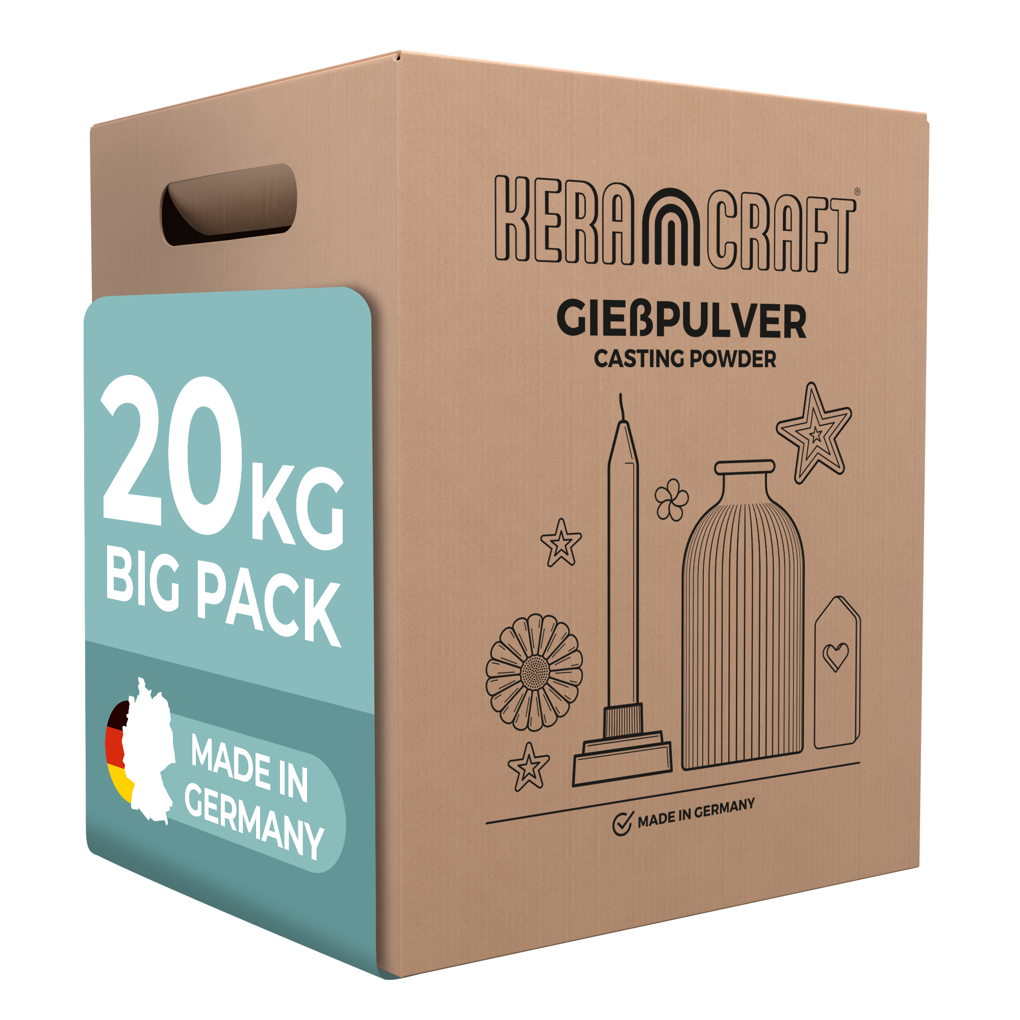 Das lässt sich ganz einfach berechnen. Einfach Die Form mit Wasser füllen, die Menge durch 2 teilen und dann die 3-fache Menge Gießpulver dazugeben.